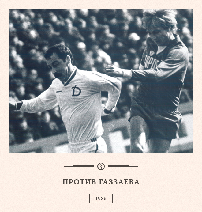 Стадион «Торпедо». Чемпионат СССР. «Торпедо» против тбилисского «Динамо». Тогда мы уступили динамовцам со счётом 0:2. В этом эпизоде нападающий команды Валерий Газзаев пытался оставить меня без мяча, но я не дал ему себя обокрасть. Газзаев был приличным игроком – против него всегда было непросто играть.