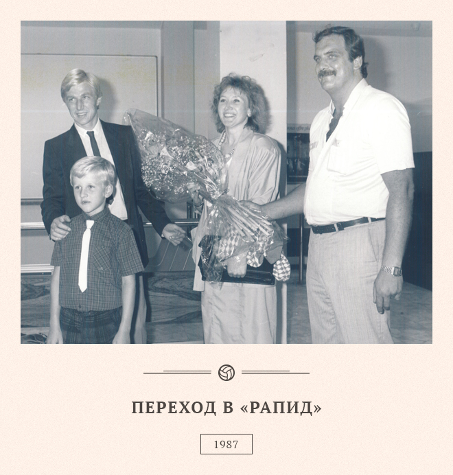 Ещё один из периодов карьеры связан с венским «Рапидом». На фото – сын Сергей, я, жена и футбольный менеджер австрийского клуба, который встретил меня вместе с моей семьёй в аэропорту Вены.