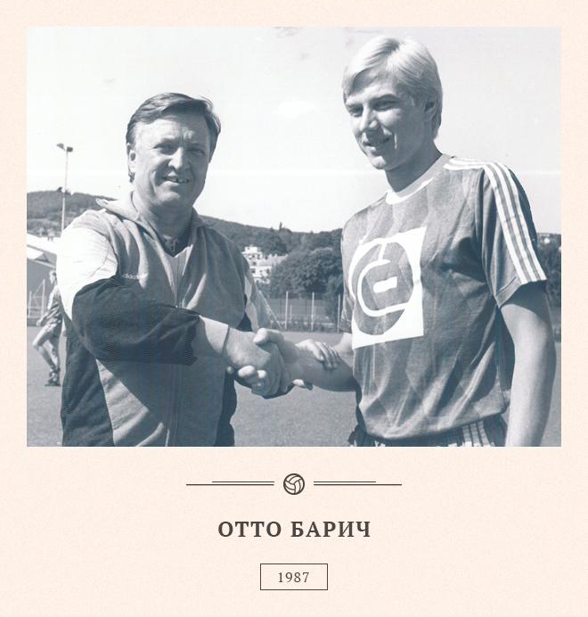 Тренировочное поле «Рапида». На фото – с главным тренером «Рапида» в тот год Отто Баричем. Хорватский специалист приветствует меня в новой команде. Первое время я не проходил в стартовый состав австрийского клуба, на поле выходили только югославские легионеры и местные футболисты. Но я продолжал показывать на тренировках всё, на что я был способен. Уже примерно через два месяца после своего прихода в клуб играл в основе «Рапида».