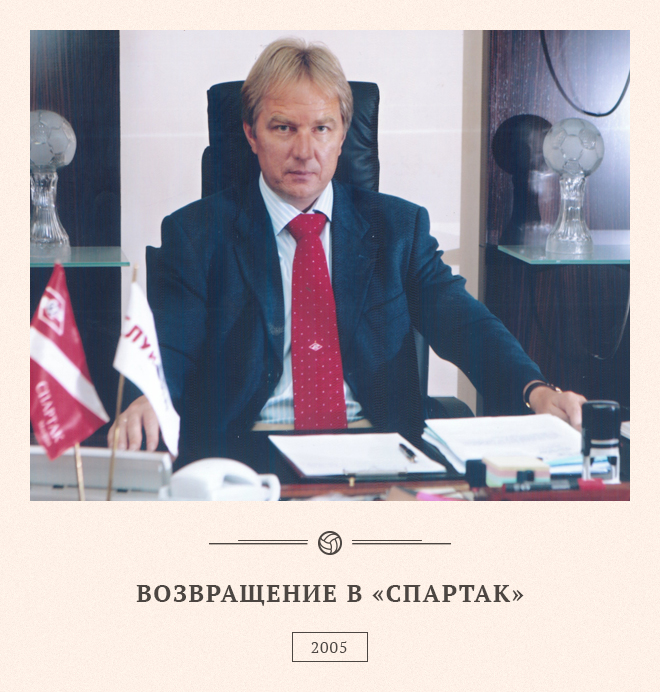 Возвращение в «Спартак». В 2005 году стал генеральным директором красно-белых. На первых порах работа на этом посту была для меня непривычной, но в скором времени я смог освоиться в новой для себя роли.