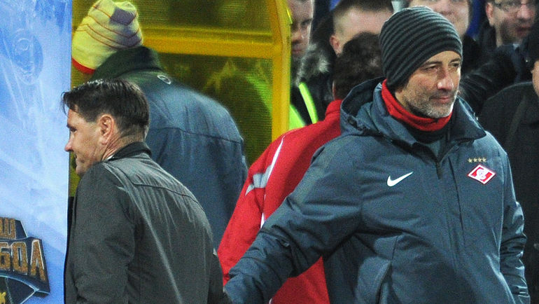 Бывший главный тренер "Спартака" Мурат ЯКИН (справа) и нынешний наставник красно-белых Дмитрий АЛЕНИЧЕВ. Фото Алексей ИВАНОВ, "СЭ"