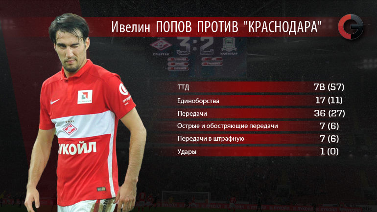 Кажется, причины яркой игры Попова кроются именно в прекрасной физической готовности. Как легко он освобождался от соперников и находил свободные зоны, как часто пускался в обводку и проходил сквозь двух-трех оппонентов! Компания InStat оценила действия болгарина выше всех среди участников матча (вторым с небольшим отставанием идет Глушаков).