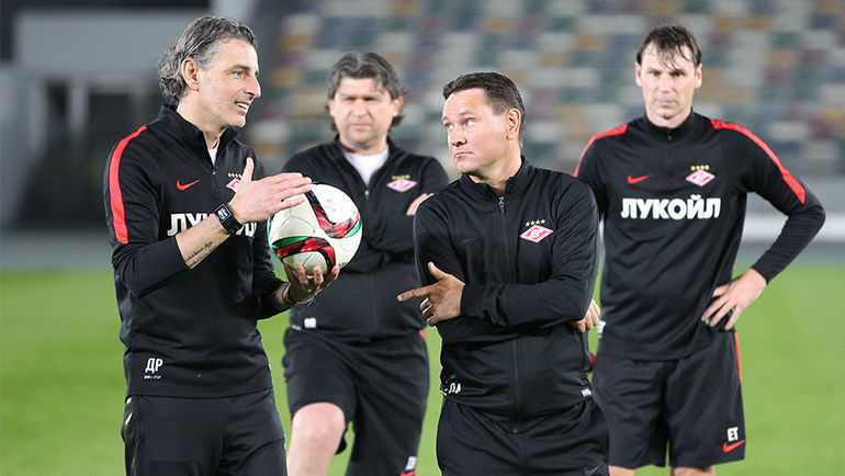 Январь. Абу-Даби. Тренерский штаб красно-белых: Джанлука РИОММИ, Дмитрий АНАНКО, Дмитрий АЛЕНИЧЕВ и Егор ТИТОВ (слева направо). Фото Александр СТУПНИКОВ, ФК "Спартак"