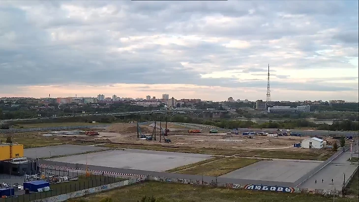 Над стройкой "Арены-Омск" кружит квадрокоптер. В объективах его камеры, будто муравьи снуют строители. И кажется,что среди шума техники слышится скольжение коньков,и треск бортиков.