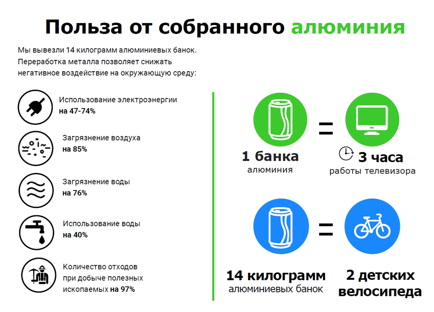 Разделяя отходы на мероприятиях, мы: сокращаем количество вывозимого на полигоны мусора, создаем культуру осознанного потребления среди участников, бережем богатства природы, возвращаем уже добытые ресурсы в производство, очищаем свою совесть.