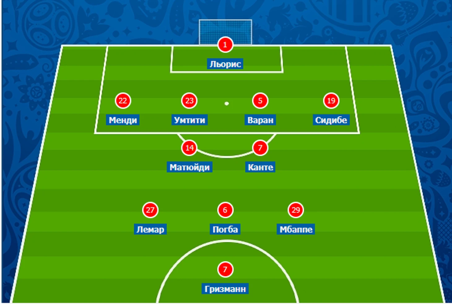 На острие атак увидим Гризманна, который и сезон ярко завершил победой в Лиге Европы, и за сборную забил четыре мяча в отборе. Оливье Жиру, который под началом Дешама забил больше других исполнителей, из-за скомканного сезона вряд ли получит место в основе. В полузащите, наверняка, увидим Лемара, Погба и Мбаппе, которых просто грех оставлять на "банке". В опорной зоне будут мэтры одноименного амплуа - Матьюди и Канте. Подступы к штрафной площадке будут оборонять Варан, Умтит, Менди и Сидибе, а на ворота станет Льорис. Не стоит исключать и того, что в нападении либо в полузащите будет место и для Дембеле, но пока оставим его в запасе. Все же слишком много он пропустил из-за травмы и его выступление в "Барселоне" пока сложно назвать выдающимся.