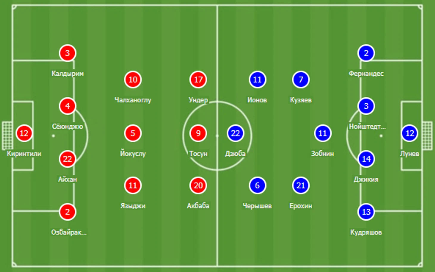 Сборные Турции и России имеют в своём составе только по одному классному центральному нападающему, поэтому особых вариантов как строить игру впереди у них нет. Схема сборных Турции и России будет ближе к 4-3-3. Главные перестроения стоит ждать во втором тайме. Например, Станислав Черчесов легко может воспользоваться фишкой Сергея Семака и выпустить в пару к Артёму Дзюбе Антона Заболотного. Две башни плюс Александр Ерохин будут снимать весь верх в штрафной соперника.