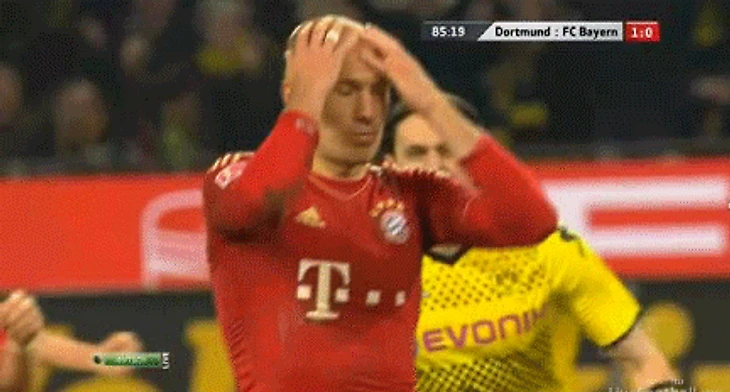 "Бавария" проиграла второй подряд чемпионский титул и в ключевом поединке с дортмундской "Боруссией", когда нужна была победа, Роббен не забивает заработанный пенальти. Защитник соперника Невен Суботич в порыве эйфории не поленился позлорадствовать Арьену прямо в лицо.