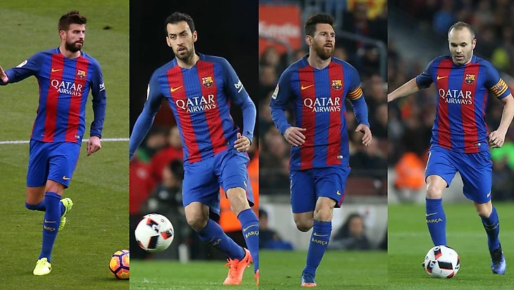 Пике, Бускетс, Иньеста, Месси - игроки, принявшие участие в наибольшем кол-ве финалов(8) Кубка Испании за "Барселону".