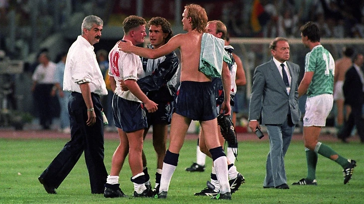 После поражения Камеруна в четвертьфинале против англичан, когда сборная Англии дважды забила с пенальти, у меня даже случилась конфликт с друзьями на эту тему, который практически перерос в драку. Я был в восторге от игры английской связки Гаскойн - Линекер и откровенно "топил" за бритов. Поэтому и защищал "трех львов", которых обвиняли в том, что из-за них засудили Камерун. "Ничего, фрицы покажут англичашкам, где раки зимуют", - было решение двора. Так получилось, что этот полуфинал мы смотрели утром большой толпой на квартире у одного из ребят (команды на тот момент уже сыграли матч, но спортивных газет в киоске не было, и мы не знали результат этого матча, который был сыгран накануне вечером) все основное время мои друзья неистово болели против Англии, но в дополнительный экстра-тайм градус напряжения сменился, и пару ребят присоединились ко мне.Перед серией пенальти камера показала лицо рыдающего Гаскойна, который плакал из-за того, что получил желтую карточку и должен будет пропустить или финал или матч за третье место. "За гансов - это не по-пацански!", - сказал один из авторитетных пацанов нашего района, и в серии пенальти за Англию болели все. Именно эта серия пенальти стала началом того кошмара, который англичане прервали только на чемпионате мира в России. Когда Крис Уоддл промахнулся, он даже и не знал, что где-то в Советском Союзе большая компания подростков вытирала слезы вместе с ним, Стюартом Пирсом и Полом Гаскойном. Тогда мы еще не знали, что на пресс-конференции после этого матча Гари Линекер подарит миру свой афоризм: "В футбол играют двадцать два человека, а побеждают всегда немцы". Наши надежды были связаны с Марадоной, который, как супергерой должен был отомстить за всех нас этой Германии, но Диего самым чудовищным образом самого засудили.
