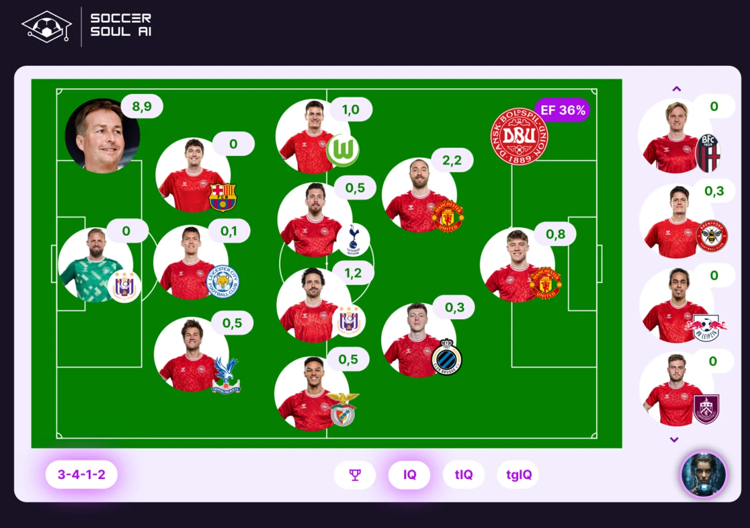 Несмотря на в целом не самый удачный свой матч, Эриксен в составе датской команды по-прежнему лучший (2,2 IQ)