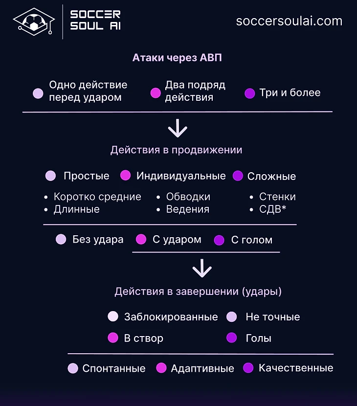Вашему вниманию последовательное сканирование командных показателей по методике игры через АВП 2.0 от Soccer Soul AI, с поиском точек роста и практическими рекомендациями.