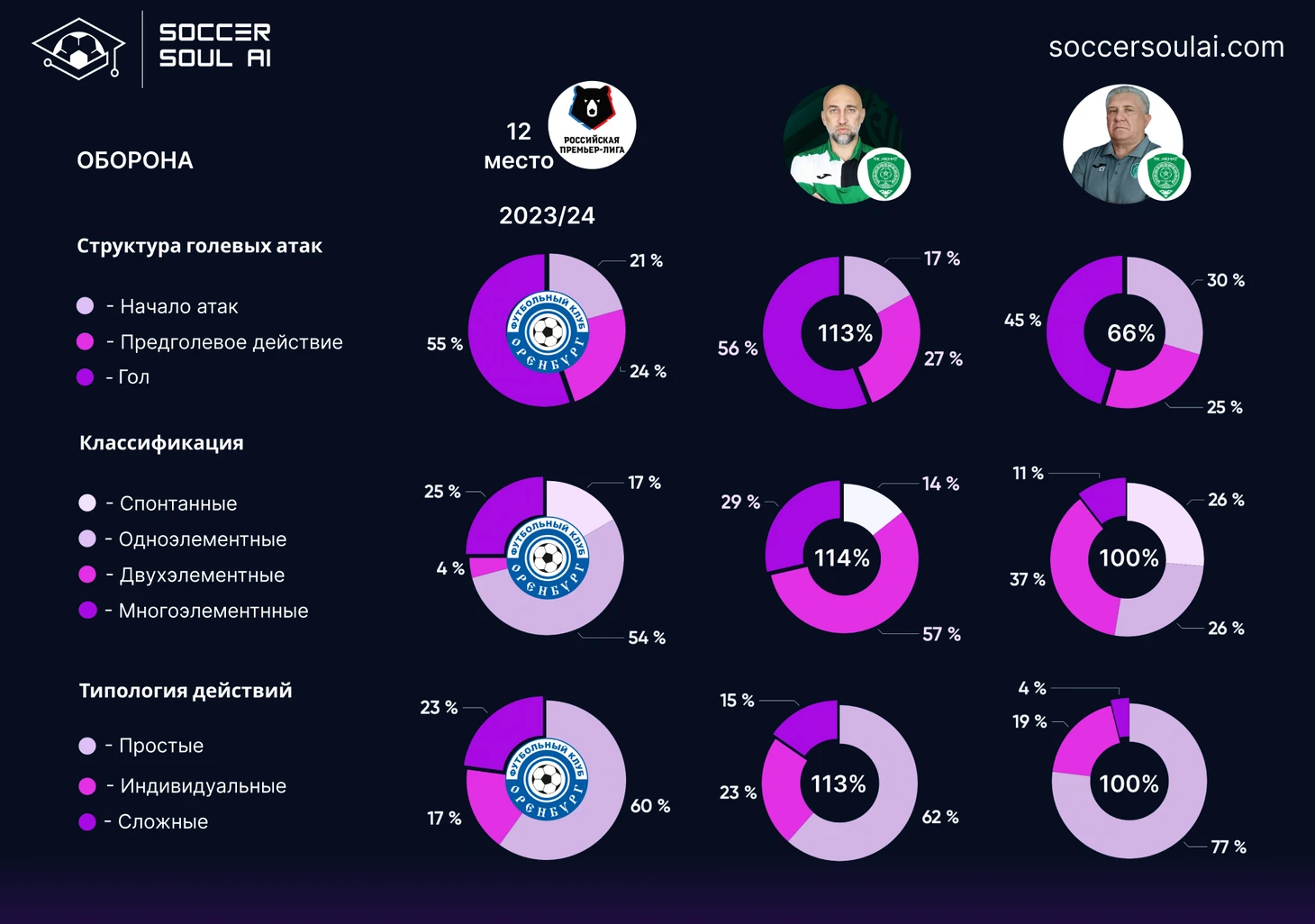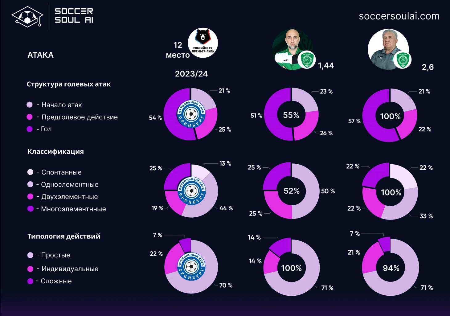 Учитывая количественные и качественные показатели баланса, структуру игры, классификацию и типологию в сравнении с ориентиром, именно Ташуев из всей четвёрки тренеров в сопоставлении является наиболее близким по совокупности данных к уровню Оренбурга 23/24.