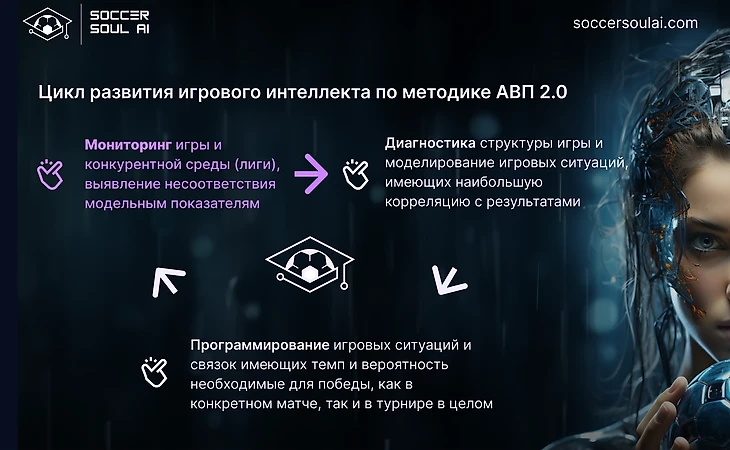 Чтобы запустить цикл развития игрового интеллекта по методике АВП 2.0, достаточно провести замеры показателей любого контрольного матча или двусторонки, а после проведения тренировочного цикла, проведя контрольные замеры следующей игры, сопоставить показатели, замерить эффективность и начать таким образом цикл роста.