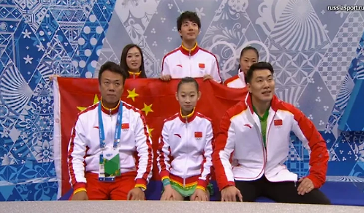21.56 Но это длилось всего несколько минут. Новыми лидерами ожидаемо стала китайская пара Чень Пен – Хао Чжан – 71.01 балла.