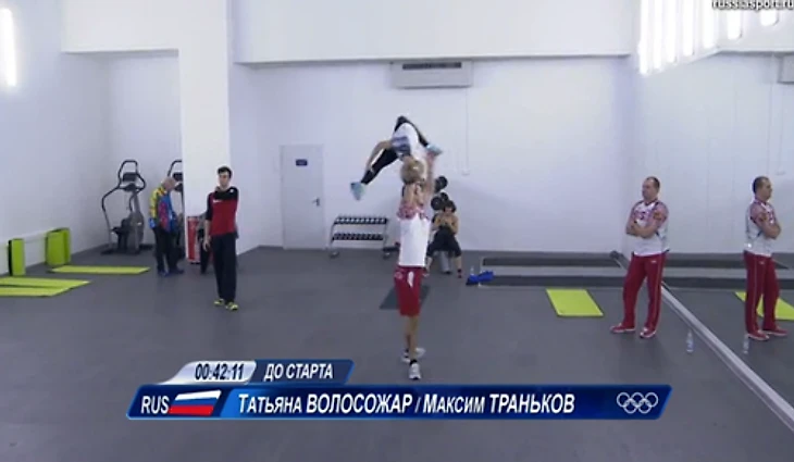 22.07 Пока лед готовят к выступлению новых пар, нам предлагают вспомнить, как Максим Траньков и Татьяна Волосожар разминались в подтрибунном помещении. Уже скоро они будут выступать.