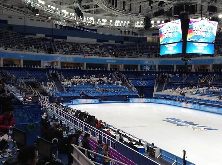 18.44 По соседству с ледовым дворцом расположен и главный объект этого дня – дворец «Айсберг», где пройдут соревнования по фигурному катанию. Для команд уже все готово.