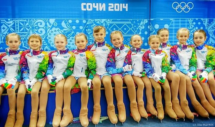 21.28 На фотографии снизу – девочки, которые помогают делать Олимпиаду лучше. Они собирают подарки, которые бросают фигуристам на лед.