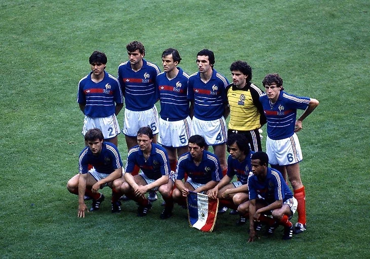 Сборная Франции, Евро-1984. Культовые футболки, в которой французы, на домашнем чемпионате выиграли золотые медали. В финале французы, ведомые Мишелем Платини, Жаном Тиганой и Алленом Жиресом, на «Парк де Пренс» обыграли испанцев со счетом 2-0.