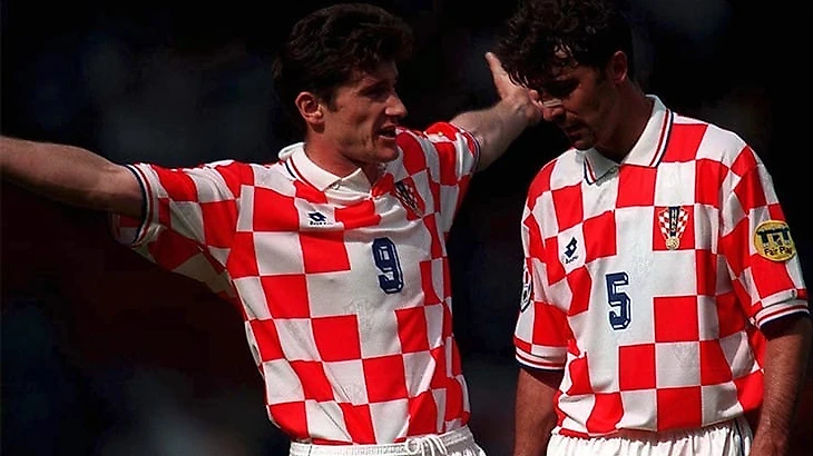 Сборная Хорватии, Евро-1996. Великолепная классическая хорватская форма. Вообще, это первое ЧЕ, когда вся Европа увидела ставшую легендарной футболку в клетку, так как тот ЧЕ стал дебютным для Хорватии, которая получила независимость от Югославии в 1991 году.