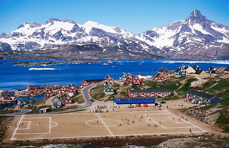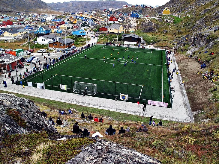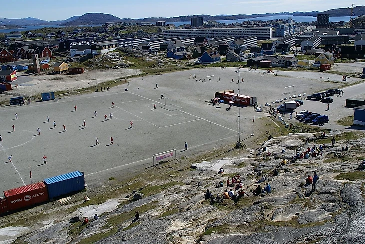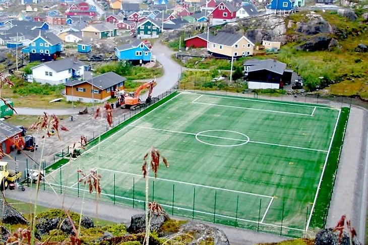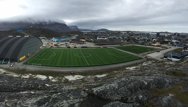 Посмотрев стадионы Дании, не смог пройти мимо такого субъекта как Гренландия. Да, формально "ледяной остров" входит в состав датского Королевства, но обладает широкой автономией и спектром самомстоятельно решаемых вопросов. Даже чемпионат по футболу гренландцы с 1971 года проводят отдельно от своих суверенов. Кроме того, в 2009 году Федерация Футбола Гренландии обратилась с просьбой в ФИФА о возможном включении в состав. Правда, Всемирная Футбольная Организация по сей день ломает голову о том, в какую футбольную "зону" включить островитян - в европейскую из-за формальной зависимости от Дании, либо же по территориальному признаку. Но это уже зона КОНКАКАФ. Ну а гренландцы, тем временем, не унывают и продолжают маленькими шажками развивать свою инфраструктуру и получать удовольствие от игры в мяч. До недавнего времени более-менее пригодных стадионов на острове всего 2. Сейчас ситуация начинает в корне меняться. Давайте посмотрим!