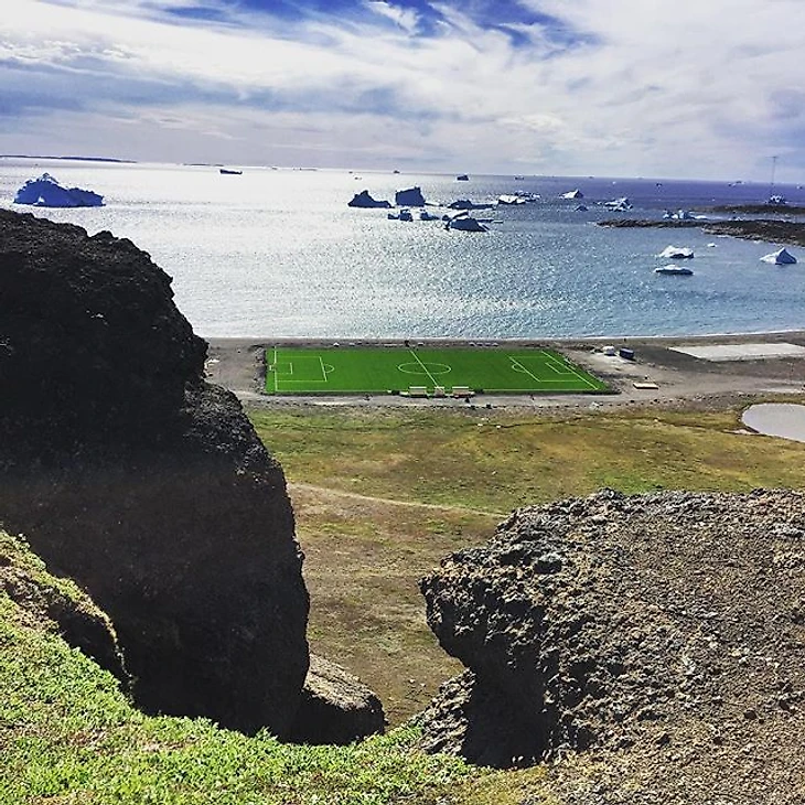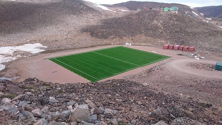 5. СТАДИОН В НУУКЕ, СТОЛИЦЕ ГРЕНЛАНДИИ. НА ЭТОЙ "АРЕНЕ" ПРОВОДИТ СВОИ МАТЧИ ГЛАВНАЯ СБОРНАЯ. ПРАВДА, РАНЬШЕ ПОЛЕ БОЛЬШЕ БЫЛО ПОХОЖЕ НА ПЕСЧАНОЕ, НО ЭТО НИЧУТЬ НЕ СМУЩАЛО ЛЮБИТЕЛЕЙ МЕСТНОГО ФУТБОЛА