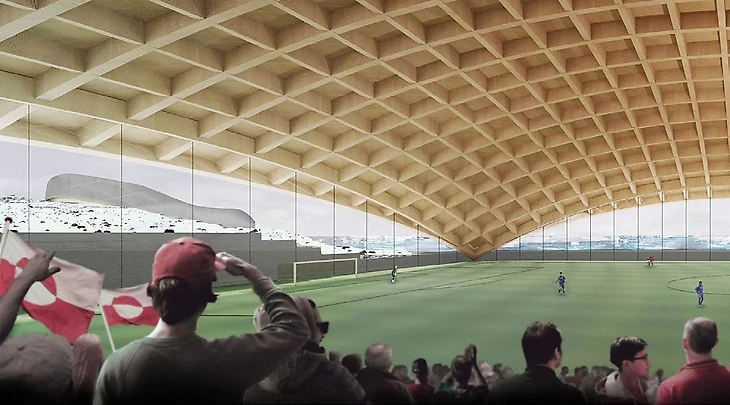 ТАКЖЕ, В СКОРОМ ВРЕМЕНИ ФУТБОЛЬНЫЕ ВЛАСТИ ГРЕНЛАНДИИ ПИТАЮТ НАДЕЖДУ СООРУДИТЬ КРЫТУЮ АРЕНУ, ВМЕСТИМОСТЬЮ 2000 ЗРИТЕЛЕЙ, СТЕНЫ КОТОРОЙ БУДУТ СОСТОЯТЬ...ИЗ СТЕКЛА. СДЕЛАНО ЭТО ДЛЯ ТОГО, ЧТОБЫ МЕСТНЫЙ БОЛЕЛЬЩИК МОГ ЛЮБВАТЬСЯ НЕ ТОЛЬКО ФУТБОЛОМ, НО И КРАСОТАМИ МЕСТНОЙ ПРИРОДЫ. ЕСТЬ ДАЖЕ ОПРЕДЕЛЕННЫЕ ПЛАНОВЫЕ НАМЕТКИ НА ЭТОТ СЧЕТ