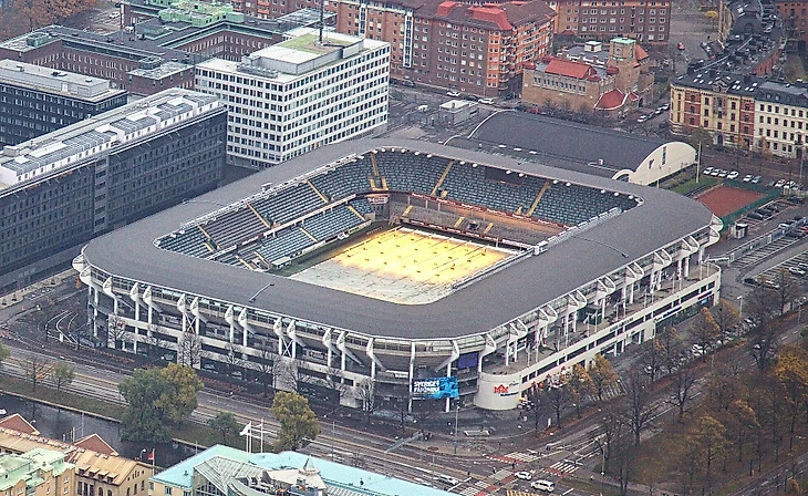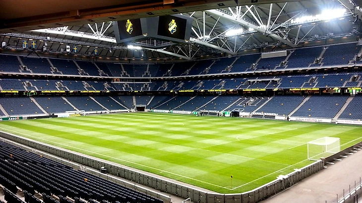 "ФРЭНДС АРЕНА" - домашний стадион ФК АИК (Стокгольм) и национальной сборной Швеции. Вместимость 50000 зрителей. Также, на этой полностью крытой арене проводятся многочисленные концерты. В дни подобных мероприятий численность возрастает до 65000 зрителей