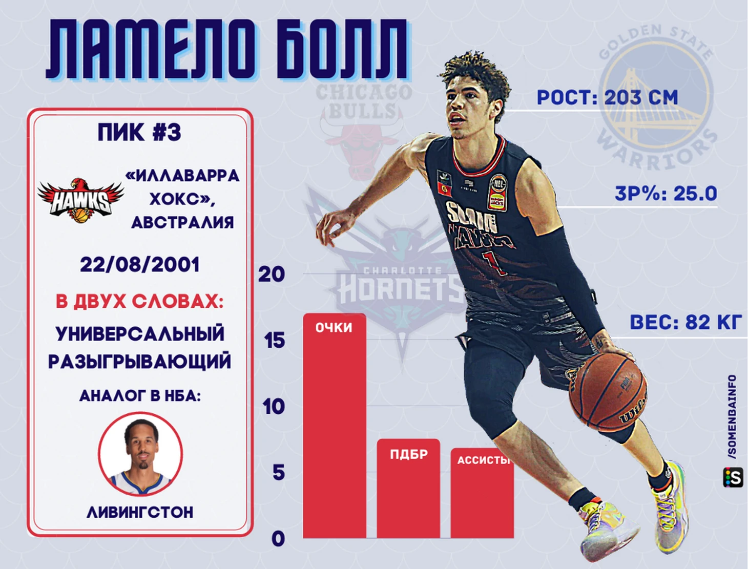 Неплохими вариантами смотрятся «Голден Стейт» и «Шарлотт». Первые, опять же, воспитают даже его, вторые — предоставят полную свободу, создав привычную среду, где Ламело сможет комфортно развиваться. И если перерождающейся династии он не особо нужен, то в «Хорнетс» придется весьма кстати.