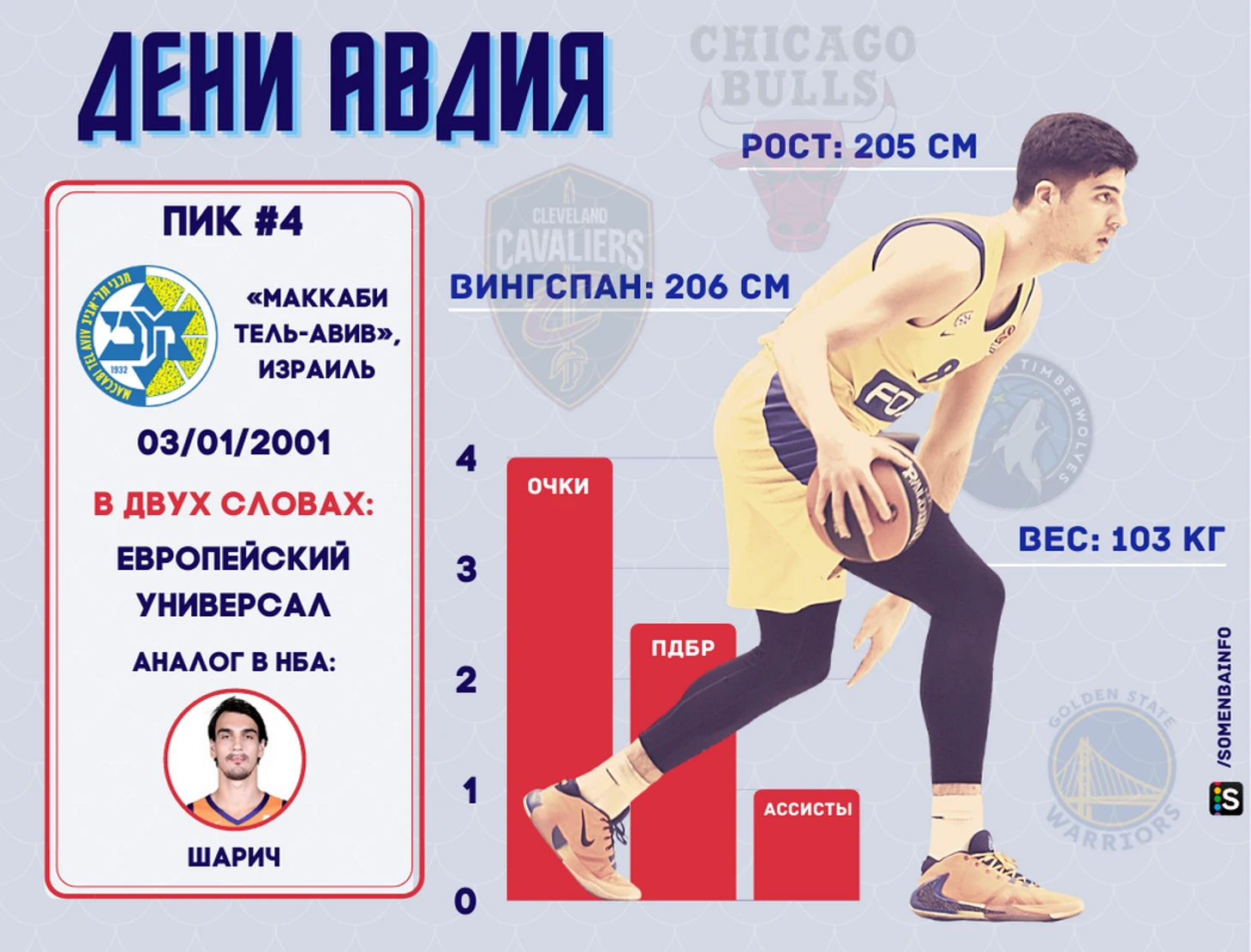 Для первой тройки израильтянин сыроват. Он бы неплохо подошел «Миннесоте», опустись клуб на несколько пиков ниже: Таунсу-Расселлу не помешает лишний игрок, способный играть без мяча, да еще и с головой на плечах. Сообщалось о предметном интересе «Уорриорз», однако в такой выбор верится с трудом — понятно, что мгновенной помощи от Авдии не предвидится.