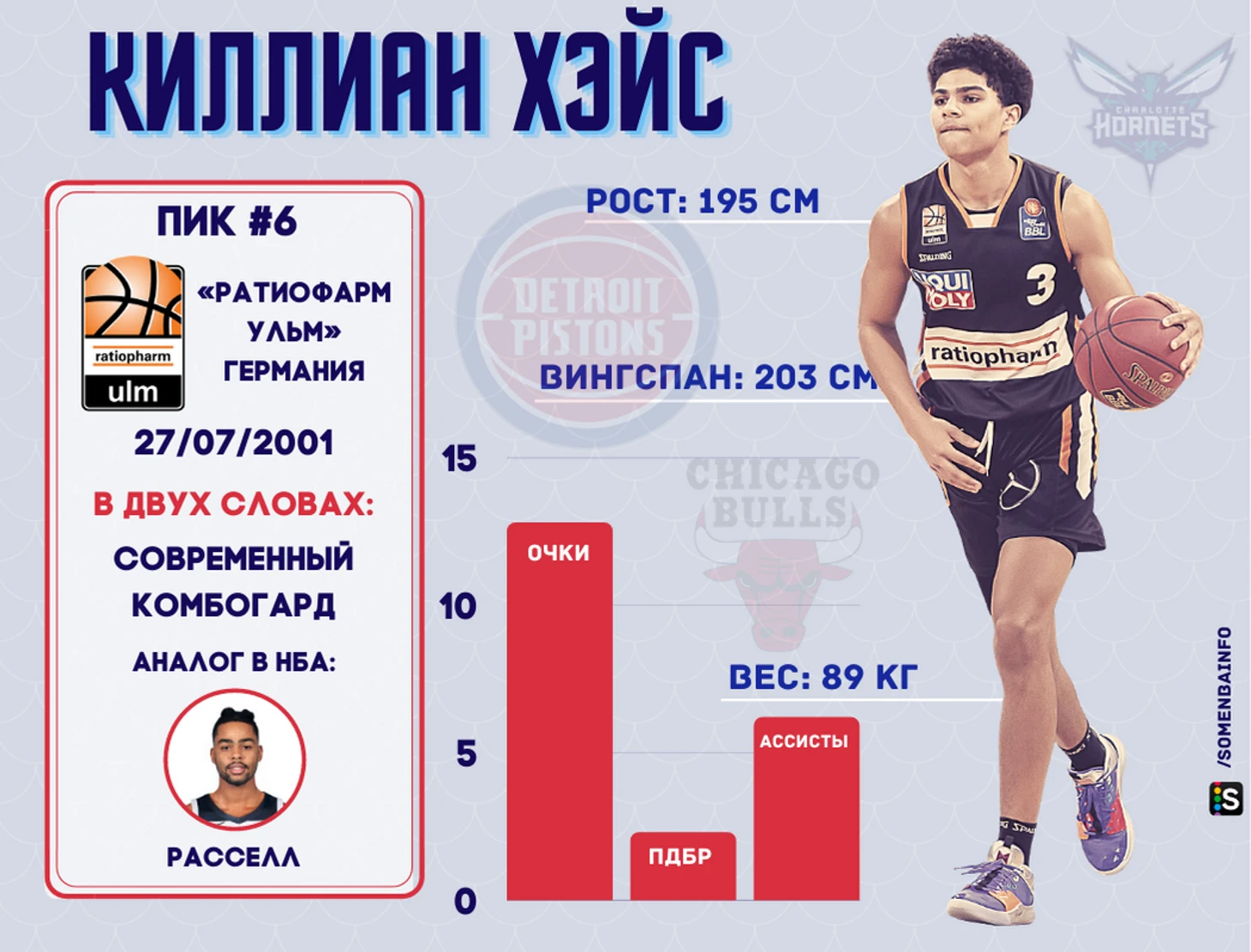 Хэйса не рискнут брать в топ-3 потому, что европейцев вечно недооценивают. До недавнего времени я бы сказал, что Киллиан так же пройдет мимо «Чикаго» и «Кливленда» из-за переизбытка молодежи у них в бэккорте, и за ним поднимется «Детройт», которому срочно нужен прилив сил.