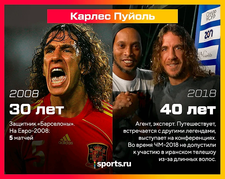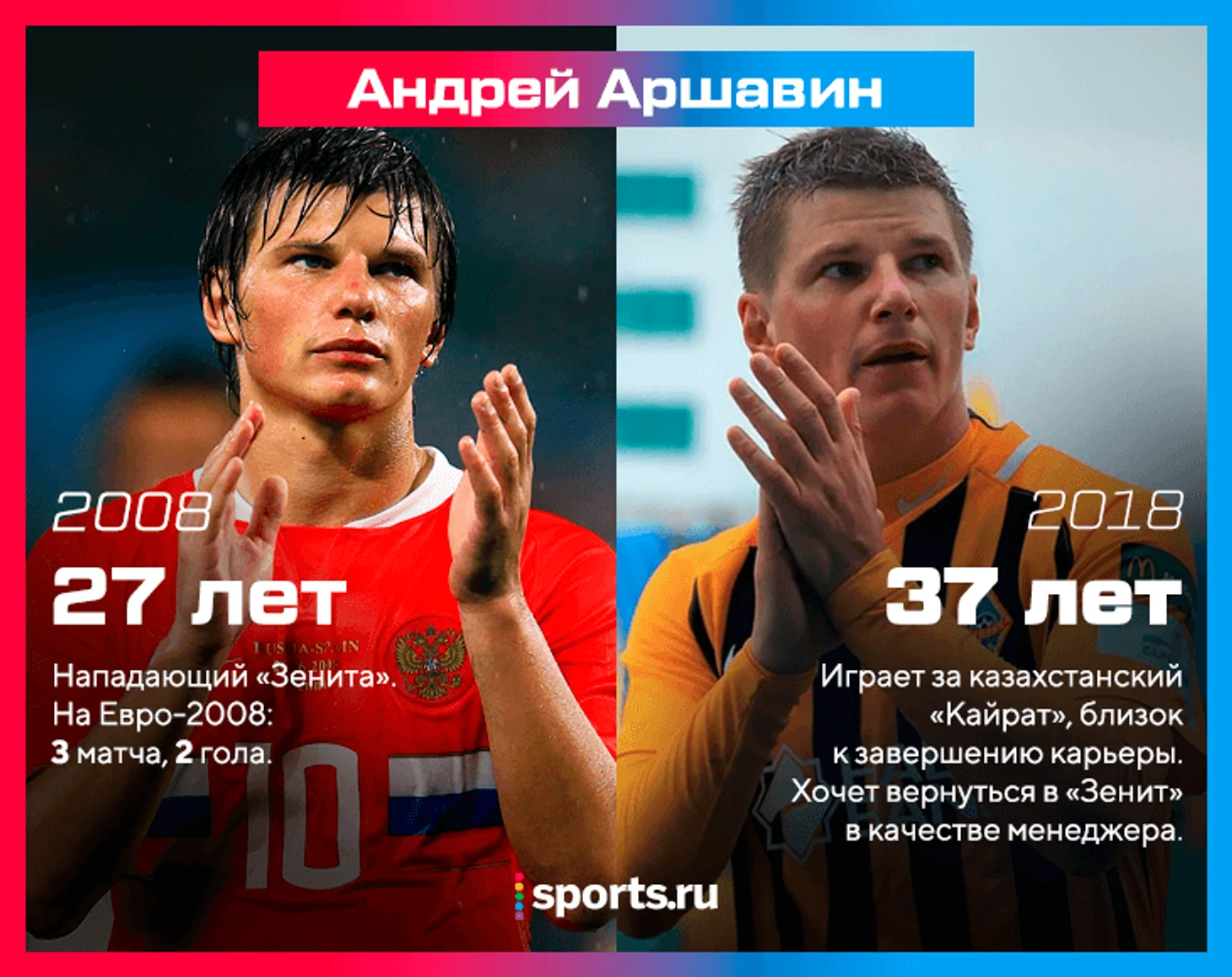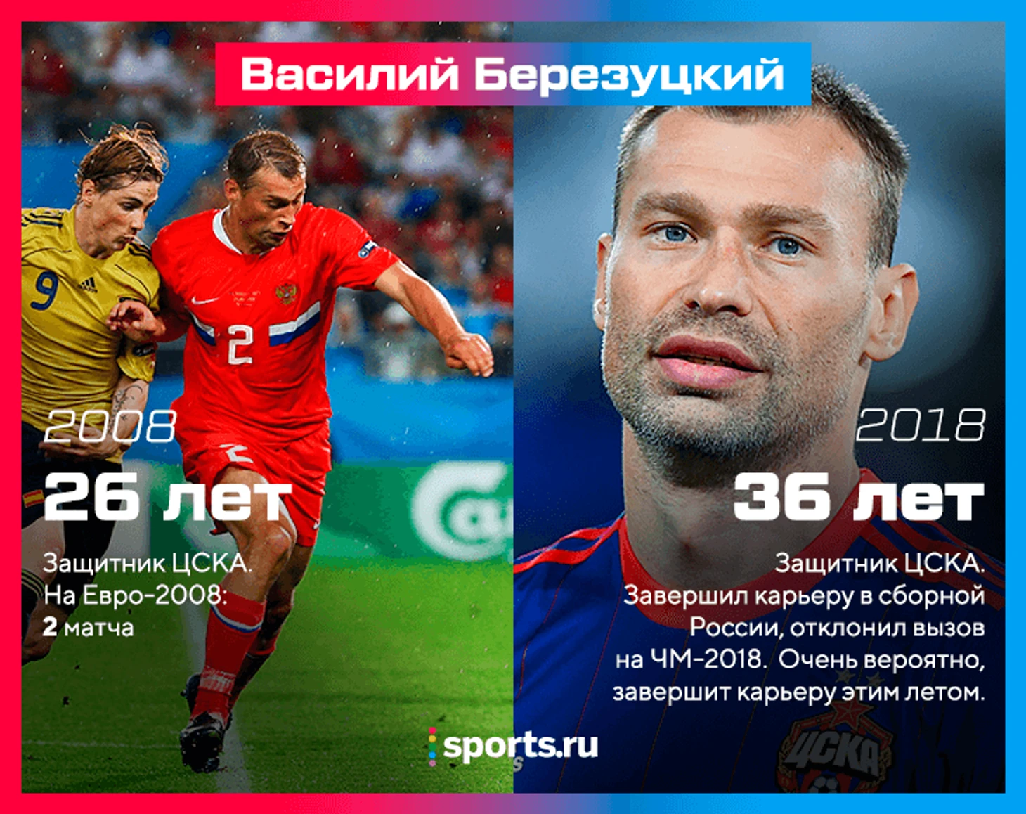 Евро-2008, пока что лучший турнир в истории сборной России, был уже 10 лет назад. Самым тяжелым соперником для команды Хиддинка стала сборная Испании, обыгравшая нас в группе (4:1) и в полуфинале (3:0). Сегодня мы снова играем с Испанией – повод вспомнить, где все те парни, за которыми мы следили в 2008-м.