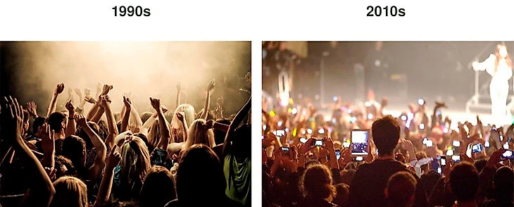 Да, это смартфоны. Мы смотрим на спорт, концерты и прочие крутые зрелища через экраны мобильников.