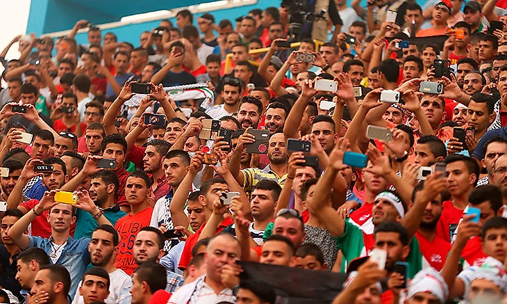Смартфоны проникли в самые неожиданные места. На матч Палестина – Объединенные Арабские Эмираты.