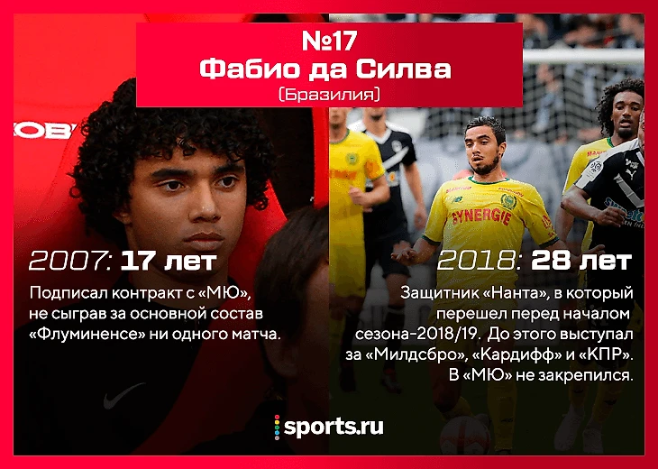 2. По да Сильве - точно Фабио, а не Рафаэль? Вообще, в то время Гари Нэвилл заканчивал с футболом, один сезон пропустил из-за травмы. С Юнайтед стояла остарая проблема с этой позицией - там играл и Уэс Браун и Джон О’Ши и даже Оуэн Харгривз. Слева же, где играл Фабио, был Эвра, в самом рассвете сил. Так что брали Рафаэля, который и считался главным талантом, а Фабио брали в довесок. Притом обоих, фактически, забрали из академии в академию - оба не могли играть до июля 2008 года, а переходили в феврале 2007. Именно Рафэль продержался в Юнайтед дольше, именно его прямо продали в Лион, а не гоняли по арендам. У Рафаэля на сотню матчей больше, чем у брата, да и в олимпийскую сборную позвали именно его - надо говорить, почему?