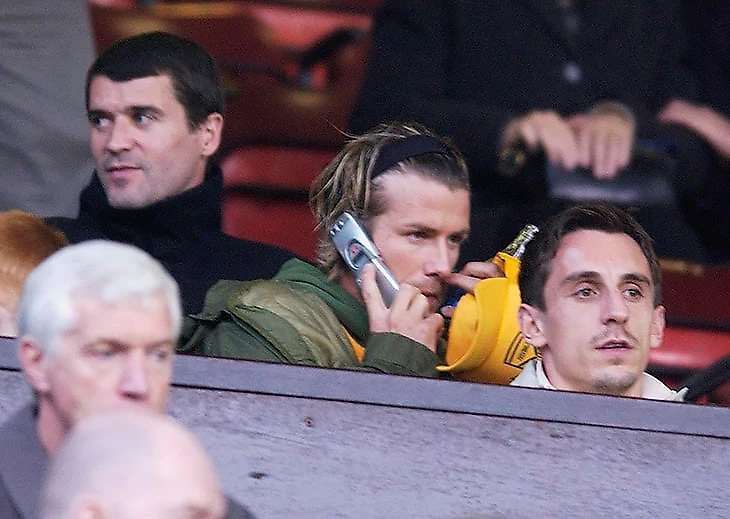 Бекс тоже обновился к 2003-му. Кто-нибудь узнал телефон? Это год огненного разрыва Дэвида с «МЮ» (летающая в раздевалке бутса, ссора с Фергюсоном и переход в «Реал»). Если Бекхэм и сэр Алекс тогда и созванивались, то по этим мобильникам.