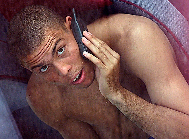 Обязательная черта телефонов того времени – внешняя антенна. Роналдо на ЧМ-1998 болтает по такому мобильнику.