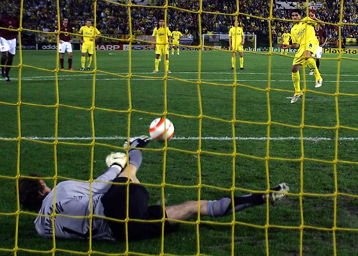 В полуфинале «Арсенал» играл с главной сенсацией сезона – «Вильярреалом» Мануэля Пеллегрини. Первый матч против Форлана и Рикельме стал последней игрой в еврокубках для «Хайбери». «Арсенал» попрощался с великим стадионом победой 1:0. Ответная игра запомнилась драматичной развязкой – Йенс Леманн на 90-й минуте отбил удар с пенальти лидера «Вильярреала» Хуана Романа Рикельме. Очень крутая деталь: «Арсенал» не пропускал 10 матчей подряд в той Лиги чемпионов, с 3-го тура группового этапа и до финала.