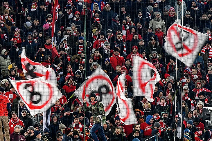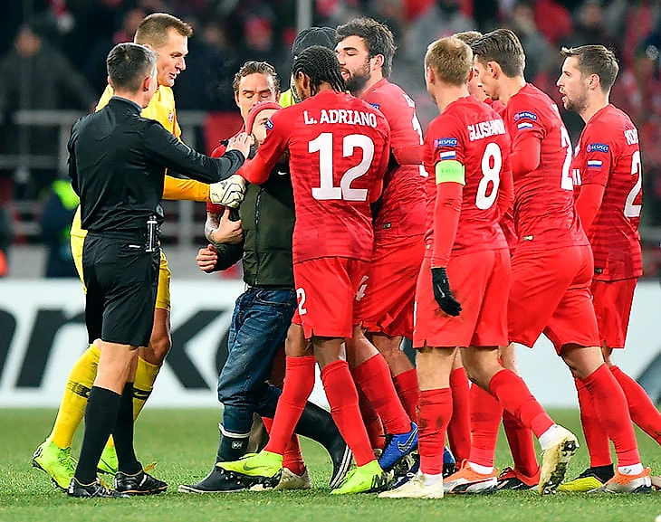 Игра с «Рапидом». Фанат «Спартака» выбежал на поле и накинулся на Глушакова.