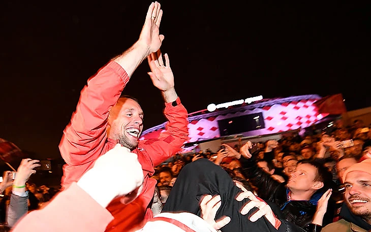 Дальше начались всеобщие гуляния, во время которых болельщики носили своего кэпа на руках.