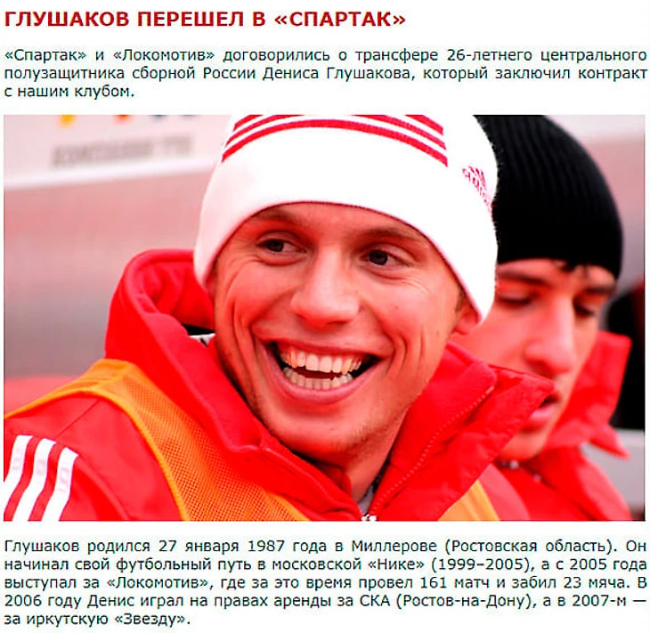 Новость о переходе Глушакова официальный сайт «Спартака» опубликовал, потом удалил и через несколько часов выложил снова.
