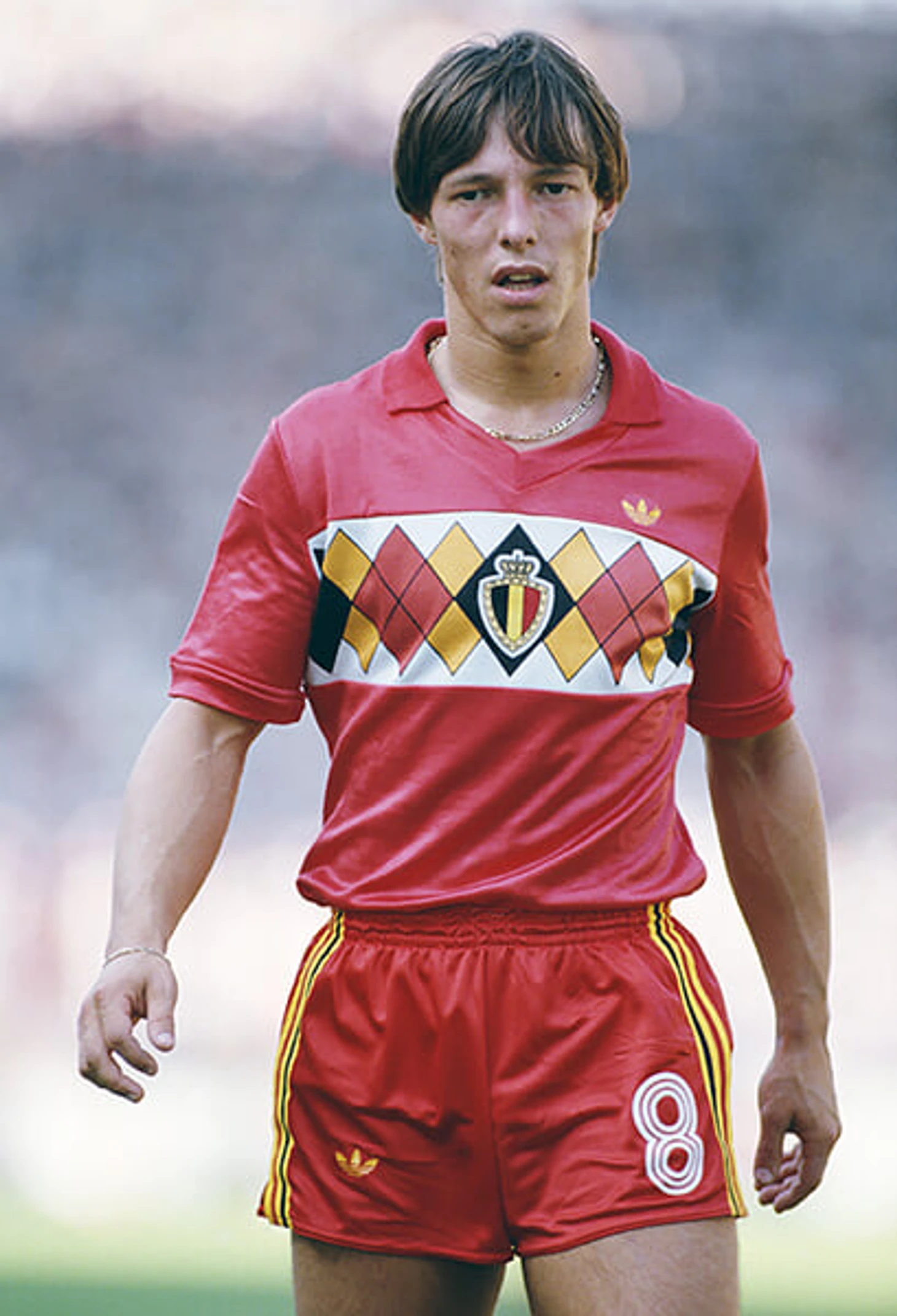 Почему в рейтинге ESPN: дизайн, который не должен работать (бельгийский герб в центре узора из красно-желто-черных ромбов на белом фоне), но работает и считается классикой adidas.