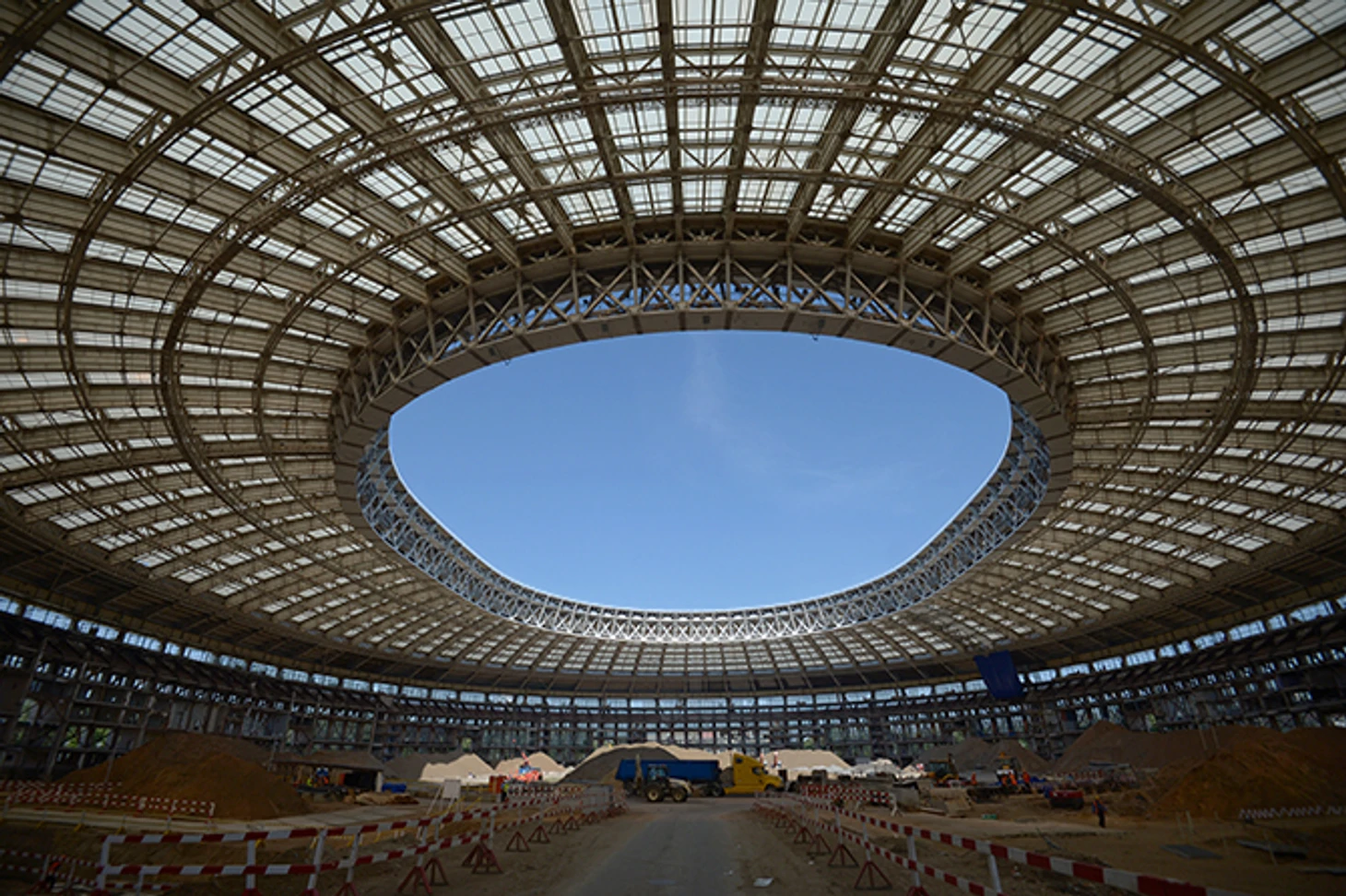 На главном стадионе страны проходит масштабная реконструкция. Демонтированы трибуны и подтрибунные помещения. Стадион после обновления станет чисто футбольным, будет вмещать 81 тысячу зрителей и получит натуральный газон. Главный архитектор Москвы обещает, что там наконец-то станет удобно смотреть футбол.