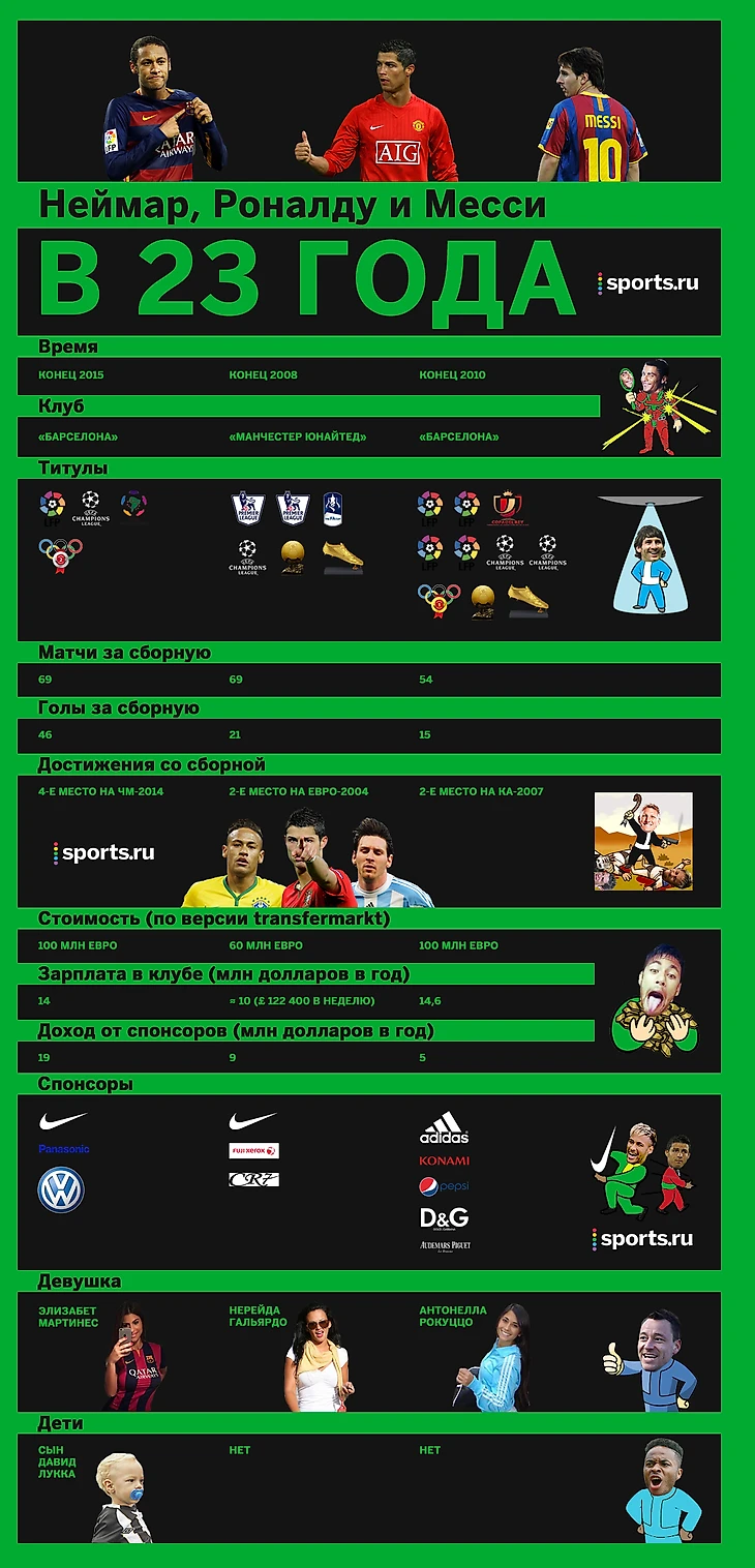 Чего к 23 годам добились Неймар, Месси и Роналду