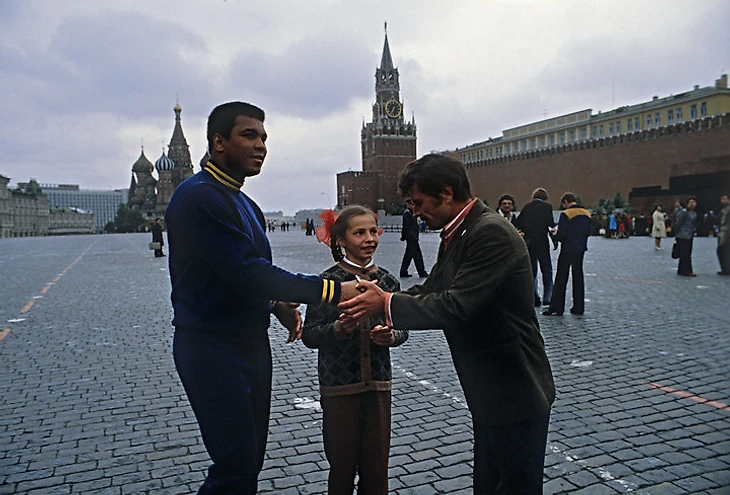 – Он прилетел в Москву с женой в июне 1978 года – по приглашению Спорткомитета и при участии нашего посла в США Добрынина. Среди тех, кто встречал его в «Шереметьево», был наш боксер Виктор Агеев. По перебитому носу Али сразу распознал в Агееве коллегу и изобразил несколько ударов. Виктор не был к такому готов, не успел увернуться и пропустил удар в подбородок. Агеев завелся, двинул Али в челюсть, тоже как бы шутя, и Мохаммед предложил: «Давай к нам на профессиональный ринг». Из аэропорта Али повезли к Юрию Никулину, в цирк на Цветном бульваре. Мне удалось проникнуть в ледовый дворец ЦСКА, где Али потом проводил показательные поединки – билетов туда не продавали, пускали только по пригласительным. Провести эти бои предложил сам Али, потому что немного заскучал во время своей поездки по Союзу. До этого его водили по экскурсиям, банкетам и высоким кабинетам – например, Брежнев подарил Мохаммеду свои часы.
