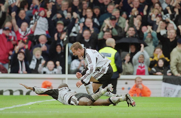 5 декабря 2000 года «Спартак» завершил сезон поражением 0:3 от «Лиона». Спустя четыре дня Штолцерс приехал с «Фулхэмом» в Вест Бромвич, за три минуты до конца матча разогнался по правому флангу и, получив мяч от Стива Финнана, на замахе убрал защитника и пробил с левой в дальний угол. Гол в первом матче – все как обычно. Через две с половиной недели Штолцерс забил «Уотфорду» после паса с левого фланга Руфуса Бреветта. После выхода в АПЛ тренер «Фулхэма» Жан Тигана привел в клуб трех атакующих игроков из Франции, и Штолцерс уже не играл так часто и успешно, как в 2000 году. Но если вспомнить, что всерьез он занялся футболом в четырнадцать лет, в двадцать три услышал, что у него больное сердце, а в двадцать пять едва не вернулся в хоккей, то понимаешь, что пять голов за месяц в романцевском «Спартаке» – это не так уж и мало.