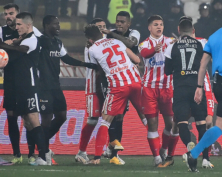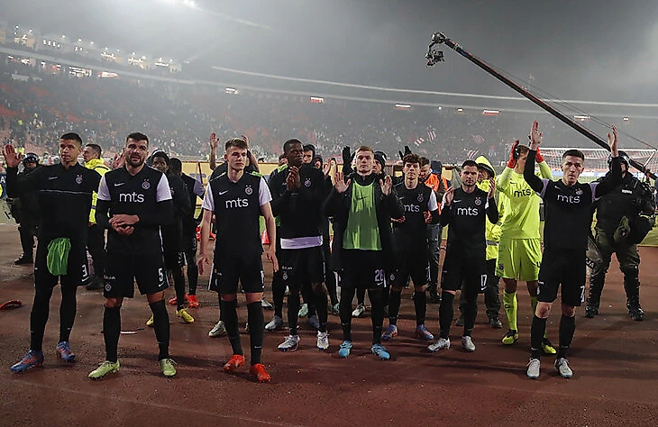 Кстати, во втором тайме фанаты «Партизана» на несколько минут вытеснили Боряна из ворот и прервали игру.