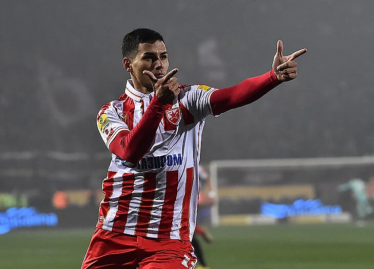 Это правый защитник двадцати трех лет, «Црвена Звезда» арендовала его в конце января. В 19 матчах за «Ривер» он так и не забил, но в Сербии раскрылся с новой стороны: во второй игре эффектным ударом с разворота усугубил разгром «Вождоваца» и тут же отдал честь болельщикам.