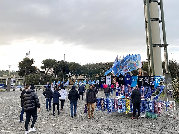 После нападения фанатов «Айнтрахта» на гостей из Италии префектура Неаполя запретила жителям Франкфурта посещать ответный матч. И все же вечером вторника в столицу Кампании прибыло 400 болельщиков «Айнтрахта». Часть из них – из других городов и не попадала под запрет. Остальные надеялись пробиться на стадион по билетам, купленным болельщиками «Аталанты», давней союзницы «Айнтрахта».
