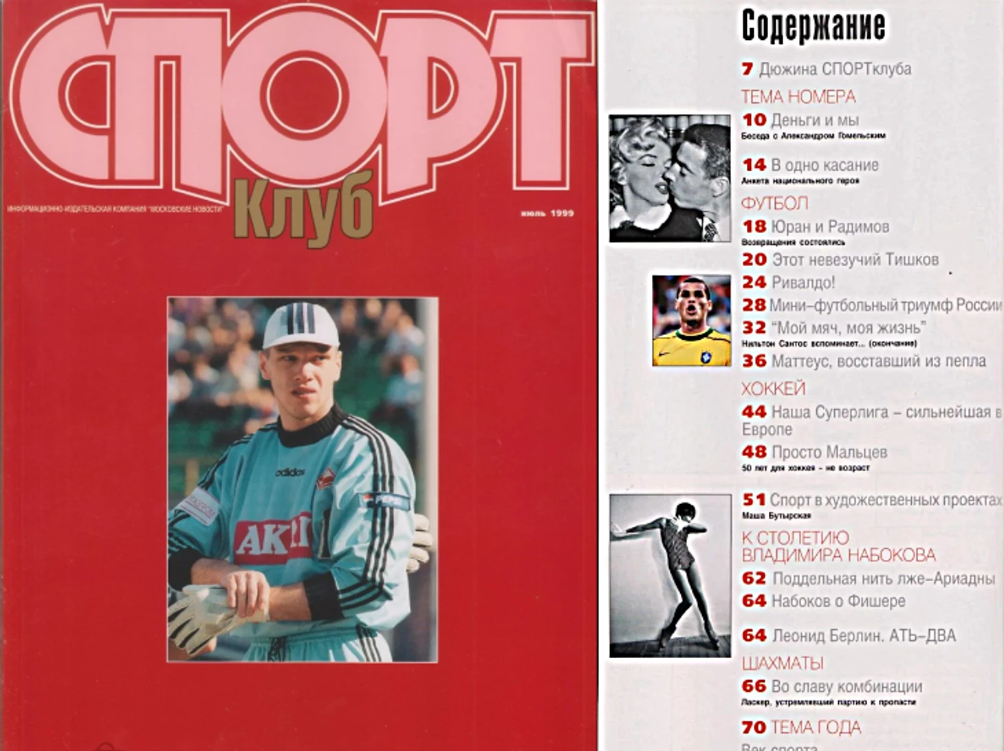 – Два года назад я обсуждал «Спортклуб» с его издателем Александром Вайнштейном. Он согласился, что по содержанию журнал был уникален, и признал, что сменил редакционную политику и главного редактора по чьему-то совету. О чем, кажется, немного жалеет.